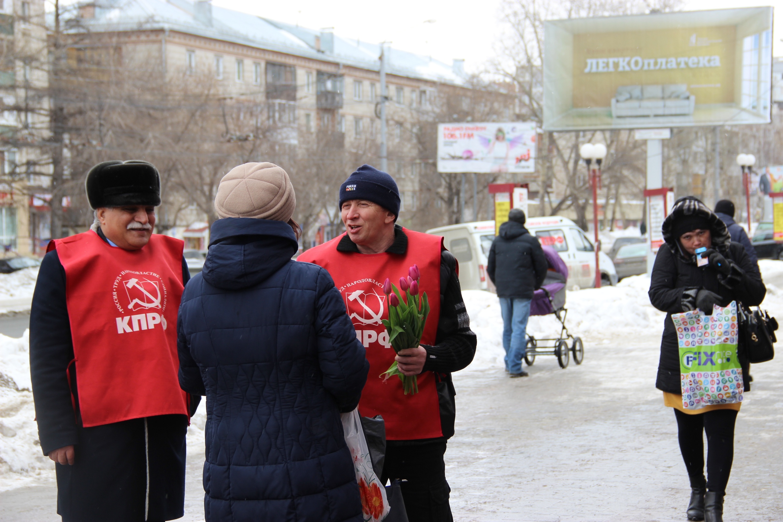 Активисты Томского горкома КПРФ провели уличную акцию на пр.Фрунзе: от лица всех мужчин Компартии поздравляли женщин с праздником и дарили тюльпаны. Десятки улыбок и немного солнечного настроения в этот пасмурный весенний день!