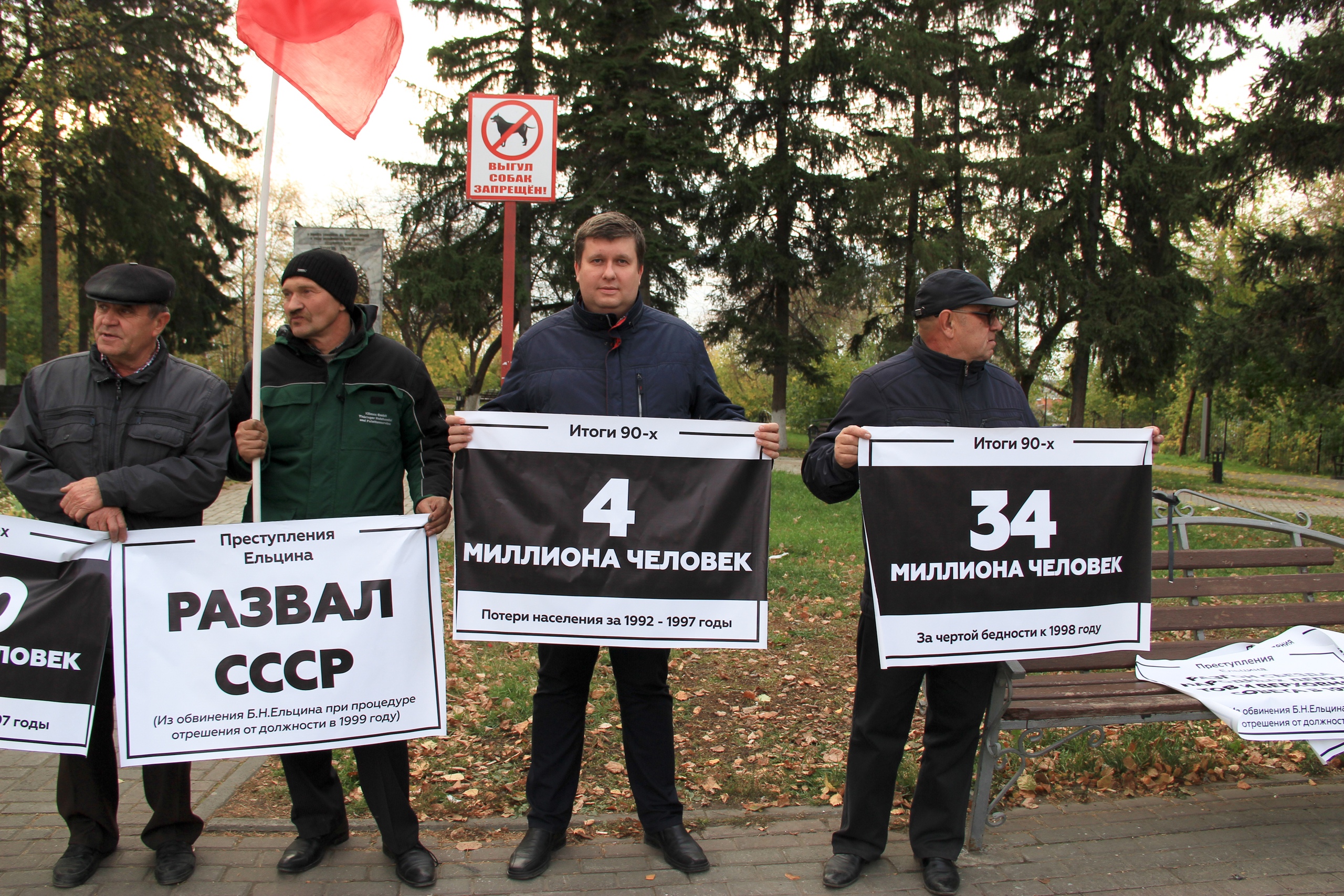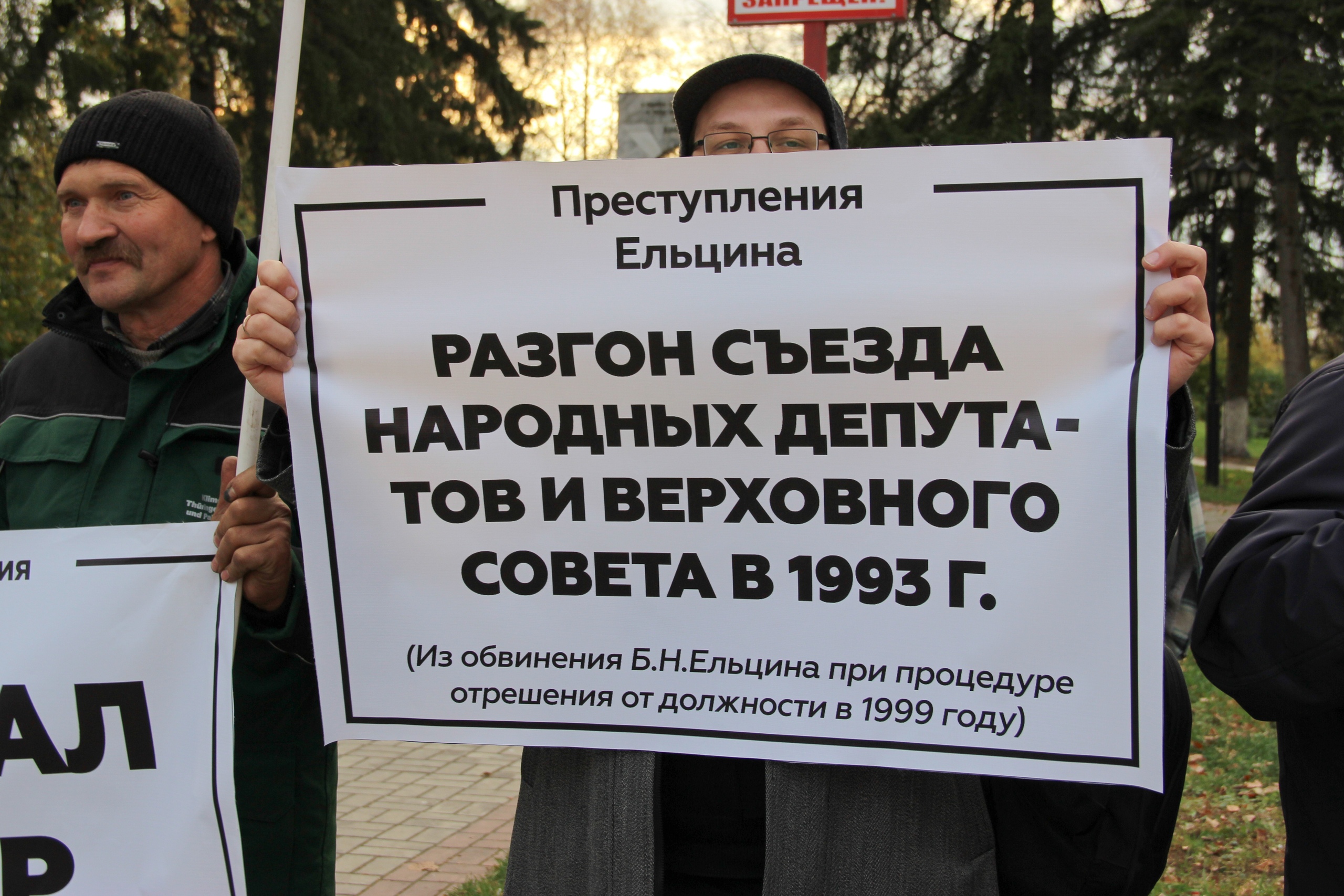 В сквере у Камня скорби напротив мэрии Томска коммунисты развернули баннер «Вечная память жертвам ельцинских репрессий». На плакатах участников акции были перечислены пять пунктов обвинения, выдвинутого против Бориса Ельцина в 1999 году: развал СССР, вооруженный государственный переворот, геноцид русского народа и народов России, развязывание войны в Чечне, ослабление армии.